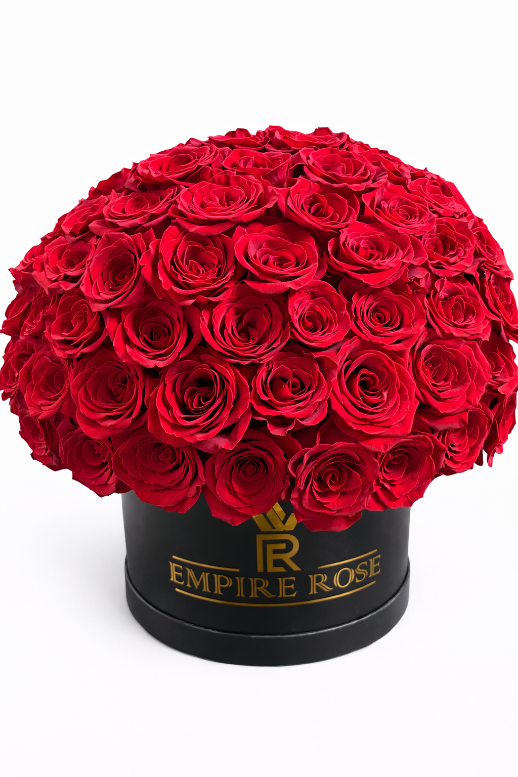25-36 stunning, beautiful, and fresh premium red roses accompanied by a luxury presentation box and an elegant envelope including a card where you can add a custom message to express joy, love, and/or kindness that will surprise the receiver.